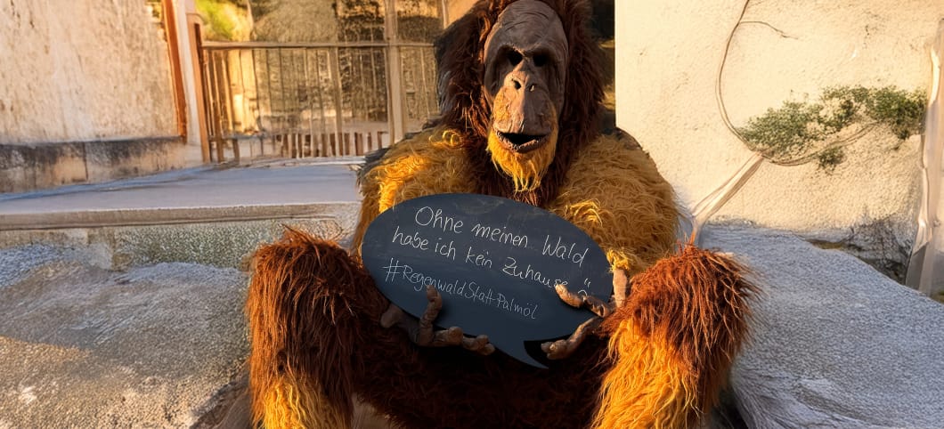 Mach’ mit bei unserer #RegenwaldStattPalmöl-Challenge! Poste ein Zeichen gegen die weltweite Zerstörung tropischer Regenwälder und beteilige dich an unserer Social-Media-Challenge #RegenwaldStattPalmöl. Unter diesem Hashtag kannst du dein Foto mit unserem Orang-Utan auf Instagram posten.